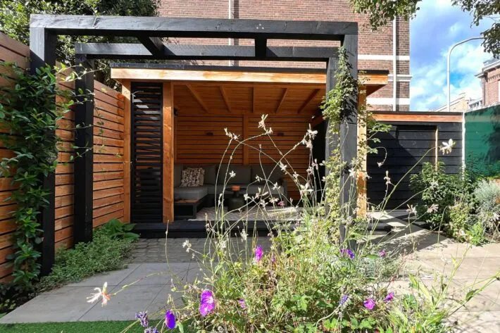 Knusse stadstuin met Douglas overkapping